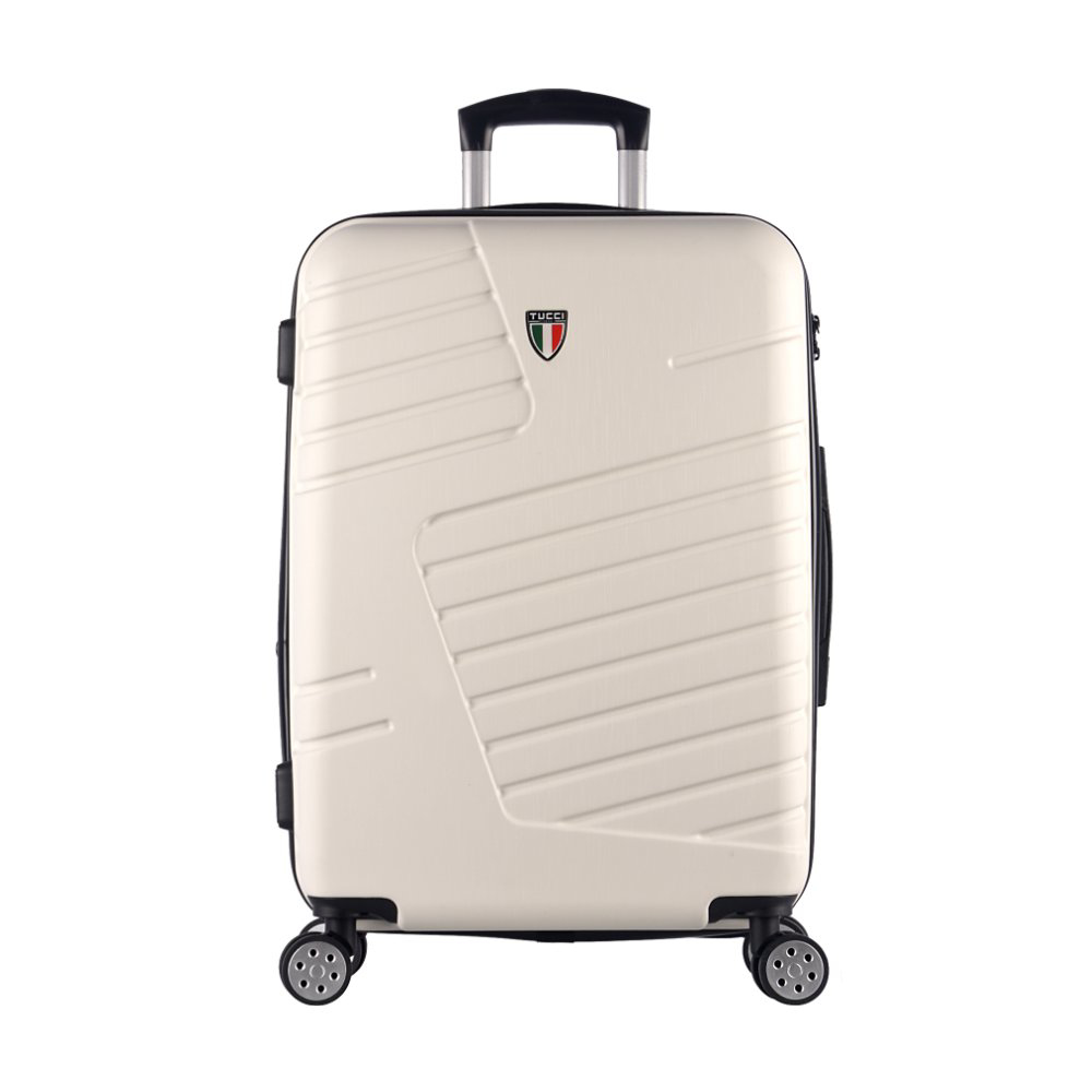Cestovní kufr z kolekce TUCCI Boschetti. Kufr je uzavíratelný zipem. Oba jezdce zipu se dají zapojit do zapuštěného kódového zámku. Horní i boční madlo je plastové. U kufru lze pomocí druhého zipu zvětšit vnitřní objem. Celý pojízdný systém je umístěn uvnitř kufru pod textilní podšívkou, aby nedošlo k poškození systému při přepravě a je opatřen čtyřmi dvojitými kolečky otočnými o 360°. Kufr má lehký výsuvný systém, vnitřní přepážku a jistící popruhy. Cena je uvedena za 1ks zobrazené velikosti L. • velikost L (large) • materiál: ABS HARDSEHLL - flexibilní, lehký, odolný proti poškrábání • ergonomická gelová rukojeť(madlo) • vnitřní rozměr: 68 x 47 x 30 cm • vnější rozměr: 76 x 51 x 31 cm = rozměry kufru včetně koleček a horního madla • objem: 96 l / 130 l při rozšíření • rozšiřitelný – objem lze zvětšit až o 35% • hmotnost: 4,6 kg • doporučená nosnost 25 kg • výsuvný systém • 4 dvojitá kola pro velký komfort při užívání otočná o 360° • kódový zámek • 10-ti letá záruka