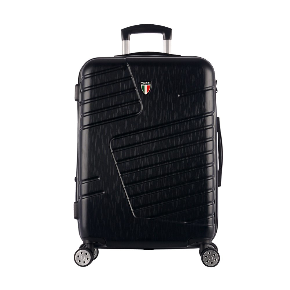 Cestovní kufr z kolekce TUCCI Boschetti.Kufr je uzavíratelný zipem. Oba jezdce zipu se dají zapojit do zapuštěného kódového zámku. Horní i boční madlo je plastové. U kufru lze pomocí druhého zipu zvětšit vnitřní objem.Celý pojízdný systém je umístěn uvnitř kufru pod textilní podšívkou, aby nedošlo k poškození systému při přepravě a je opatřen čtyřmi dvojitými kolečky otočnými o 360°. Kufr má lehký výsuvný systém, vnitřní přepážku a jistící popruhy. Cena je uvedena za 1ks zobrazené velikosti L. • velikost L (large)• materiál: ABS HARDSEHLL - flexibilní, lehký, odolný proti poškrábání• ergonomická gelová rukojeť(madlo)• vnitřní rozměr: 68 x 47 x 30 cm• vnější rozměr: 76 x 51 x 31 cm = rozměry kufru včetně koleček a horního madla• objem: 96 l / 130 l při rozšíření• rozšiřitelný – objem lze zvětšit až o 35%• hmotnost: 4,6 kg• doporučená nosnost 25 kg• výsuvný systém• 4 dvojitá kola pro velký komfort při užívání otočná o 360°• kódový zámek• 10-ti letá záruka