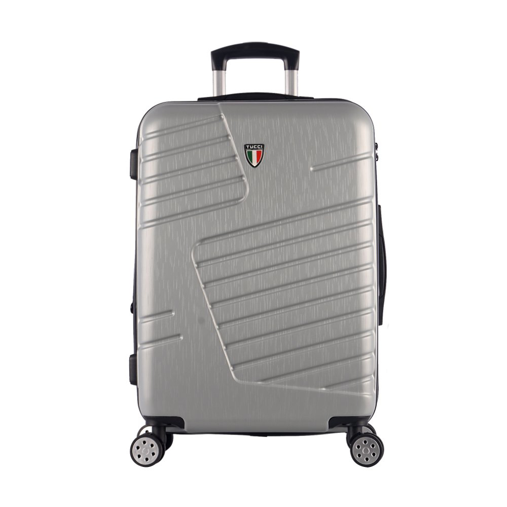 Cestovní kufr z kolekce TUCCI Boschetti. Kufr je uzavíratelný zipem. Oba jezdce zipu se dají zapojit do zapuštěného kódového zámku. Horní i boční madlo je plastové. U kufru lze pomocí druhého zipu zvětšit vnitřní objem. Celý pojízdný systém je umístěn uvnitř kufru pod textilní podšívkou, aby nedošlo k poškození systému při přepravě a je opatřen čtyřmi dvojitými kolečky otočnými o 360°. Kufr má lehký výsuvný systém, vnitřní přepážku a jistící popruhy. Cena je uvedena za 1ks zobrazené velikosti L. • velikost L (large) • materiál: ABS HARDSEHLL - flexibilní, lehký, odolný proti poškrábání • ergonomická gelová rukojeť(madlo) • vnitřní rozměr: 68 x 47 x 30 cm • vnější rozměr: 76 x 51 x 31 cm = rozměry kufru včetně koleček a horního madla • objem: 96 l / 130 l při rozšíření • rozšiřitelný – objem lze zvětšit až o 35% • hmotnost: 4,6 kg • doporučená nosnost 25 kg • výsuvný systém • 4 dvojitá kola pro velký komfort při užívání otočná o 360° • kódový zámek • 10-ti letá záruka