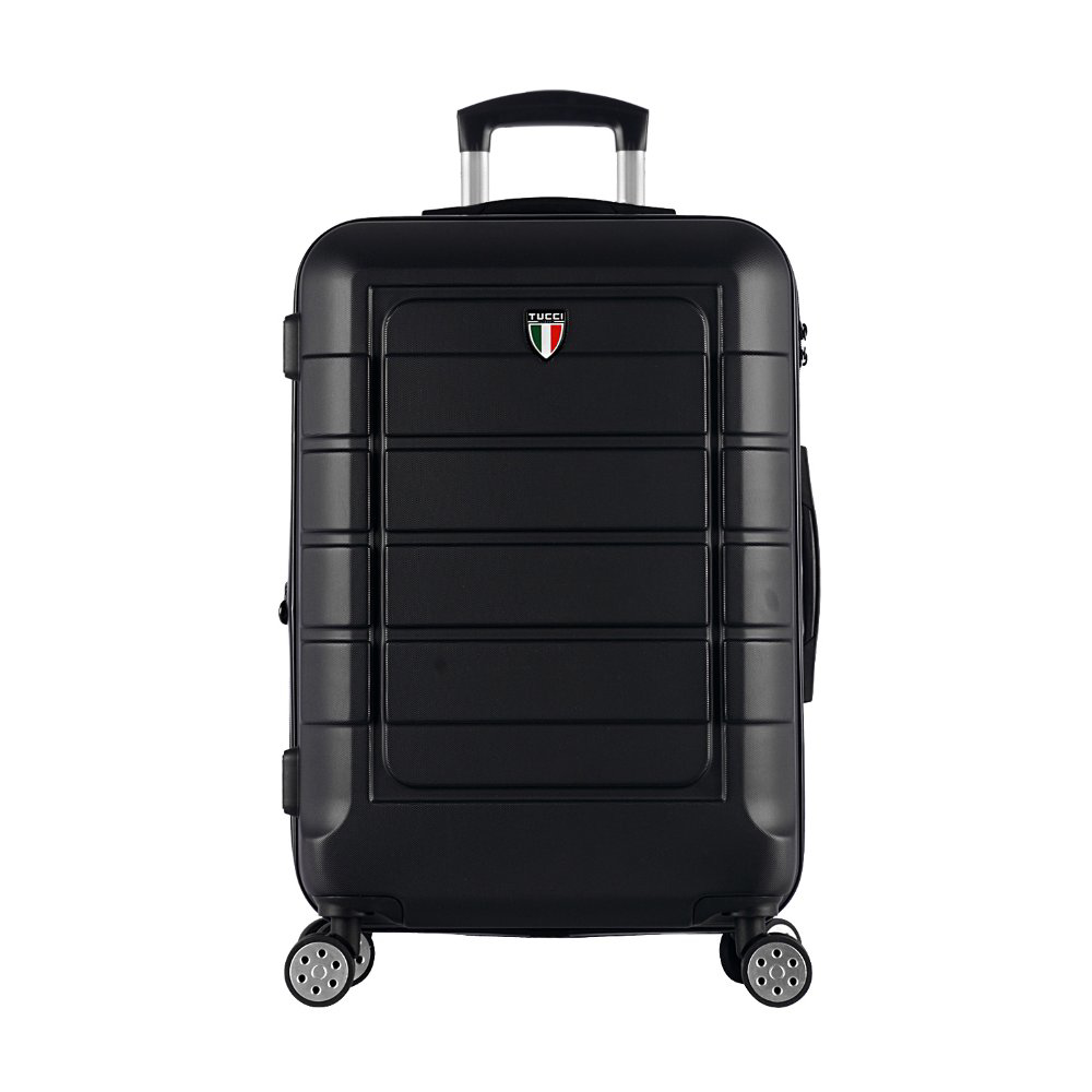 Cestovní kufr z kolekce TUCCI Console.Kufr je uzavíratelný zipem. Oba jezdce zipu se dají zapojit do zapuštěného kódového zámku. Horní i boční madlo je plastové. U kufru lze pomocí druhého zipu zvětšit vnitřní objem.Celý pojízdný systém je umístěn uvnitř kufru pod textilní podšívkou, aby nedošlo k poškození systému při přepravě a je opatřen čtyřmi dvojitými kolečky otočnými o 360°. Kufr má lehký výsuvný systém, vnitřní přepážku a jistící popruhy. Cena je uvedena za 1ks zobrazené velikosti L. • velikost L (large)• materiál: ABS HARDSEHLL - flexibilní, lehký, odolný proti poškrábání• ergonomická gelová rukojeť(madlo)• vnitřní rozměr: 67 x 46 x 30 cm• vnější rozměr: 75 x 50 x 31 cm = rozměry kufru včetně koleček a horního madla• objem: 92 l / 124 l při rozšíření• rozšiřitelný – objem lze zvětšit až o 35%• hmotnost: 4,6 kg• doporučená nosnost 25 kg• výsuvný systém• 4 dvojitá kola pro velký komfort při užívání otočná o 360°• kódový zámek• 10-ti letá záruka