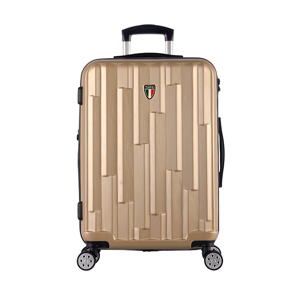 Cestovní kufr z kolekce TUCCI Riflettore. Kufr je uzavíratelný zipem. Oba jezdce zipu se dají zapojit do zapuštěného kódového zámku. Horní i boční madlo je plastové. U kufru lze pomocí druhého zipu zvětšit vnitřní objem. Celý pojízdný systém je umístěn uvnitř kufru pod textilní podšívkou, aby nedošlo k poškození systému při přepravě a je opatřen čtyřmi dvojitými kolečky otočnými o 360°. Kufr má lehký výsuvný systém, vnitřní přepážku a jistící popruhy. Cena je uvedena za 1ks zobrazené velikosti L. • velikost L (large) • materiál: ABS HARDSEHLL - flexibilní, lehký, odolný proti poškrábání • ergonomická gelová rukojeť(madlo) • vnitřní rozměr: 68 x 46 x 29 cm • vnější rozměr: 76 x 49 x 30 cm = rozměry kufru včetně koleček a horního madla • objem: 91 l / 123 l při rozšíření • rozšiřitelný – objem lze zvětšit až o 35% • hmotnost: 4,5 kg • doporučená nosnost 25 kg • výsuvný systém • 4 dvojitá kola pro velký komfort při užívání otočná o 360° • kódový zámek • 10-ti letá záruka