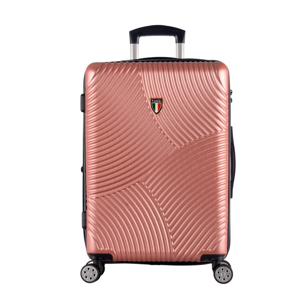 Cestovní kufr z kolekce TUCCI Srotolare. Kufr je uzavíratelný zipem. Oba jezdce zipu se dají zapojit do zapuštěného kódového zámku. Horní i boční madlo je plastové. U kufru lze pomocí druhého zipu zvětšit vnitřní objem. Celý pojízdný systém je umístěn uvnitř kufru pod textilní podšívkou, aby nedošlo k poškození systému při přepravě a je opatřen čtyřmi dvojitými kolečky otočnými o 360°. Kufr má lehký výsuvný systém, vnitřní přepážku a jistící popruhy. Cena je uvedena za 1ks zobrazené velikosti L. • velikost L (large) • materiál: ABS HARDSEHLL - flexibilní, lehký, odolný proti poškrábání • ergonomická gelová rukojeť(madlo) • vnitřní rozměr: 68 x 48 x 28 cm • vnější rozměr: 76 x 51 x 29 cm = rozměry kufru včetně koleček a horního madla • objem: 91 l / 123 l při rozšíření • rozšiřitelný – objem lze zvětšit až o 35% • hmotnost: 4,5 kg • doporučená nosnost 25 kg • výsuvný systém • 4 dvojitá kola pro velký komfort při užívání otočná o 360° • kódový zámek • 10-ti letá záruka