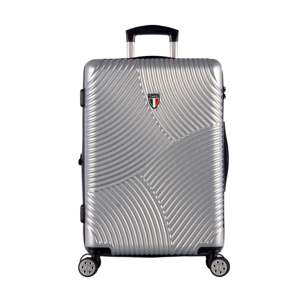 Cestovní kufr z kolekce TUCCI Srotolare. Kufr je uzavíratelný zipem. Oba jezdce zipu se dají zapojit do zapuštěného kódového zámku. Horní i boční madlo je plastové. U kufru lze pomocí druhého zipu zvětšit vnitřní objem. Celý pojízdný systém je umístěn uvnitř kufru pod textilní podšívkou, aby nedošlo k poškození systému při přepravě a je opatřen čtyřmi dvojitými kolečky otočnými o 360°. Kufr má lehký výsuvný systém, vnitřní přepážku a jistící popruhy. Cena je uvedena za 1ks zobrazené velikosti L. • velikost L (large) • materiál: ABS HARDSEHLL - flexibilní, lehký, odolný proti poškrábání • ergonomická gelová rukojeť(madlo) • vnitřní rozměr: 68 x 48 x 28 cm • vnější rozměr: 76 x 51 x 29 cm = rozměry kufru včetně koleček a horního madla • objem: 91 l / 123 l při rozšíření • rozšiřitelný – objem lze zvětšit až o 35% • hmotnost: 4,5 kg • doporučená nosnost 25 kg • výsuvný systém • 4 dvojitá kola pro velký komfort při užívání otočná o 360° • kódový zámek • 10-ti letá záruka