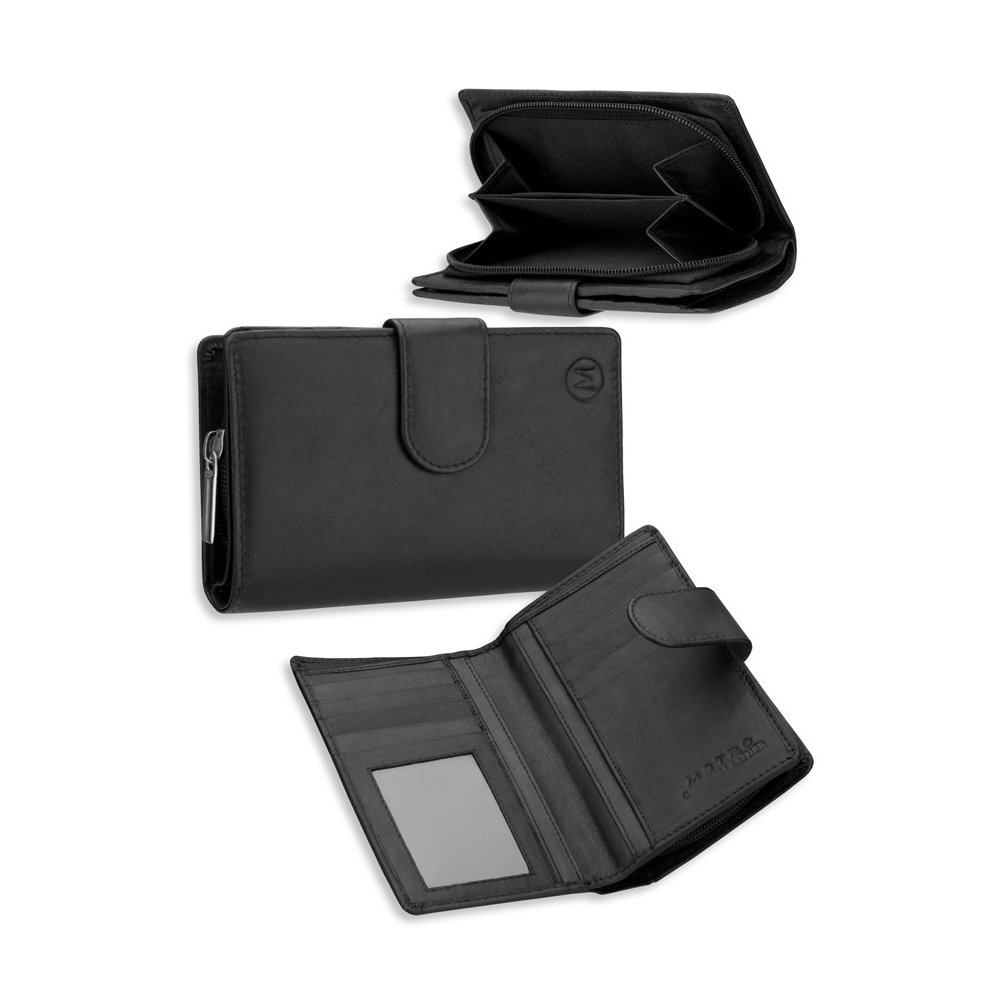 Dámská peněženka z kolekce METRO.Tato elegantní dámská peněženka je vyrobená z kvalitní pravé hovězí kůže.Peněženka je orientovaná na šířku, kapsa na drobné mince má uzavírání na zip, rozkládací část má uvnitř přihrádky na karty a bankovky.