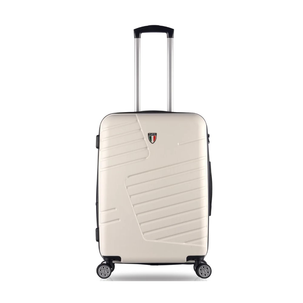 Cestovní kufr z kolekce TUCCI Boschetti. Kufr je uzavíratelný zipem. Oba jezdce zipu se dají zapojit do zapuštěného kódového zámku. Horní i boční madlo je plastové. Celý pojízdný systém je umístěn uvnitř kufru pod textilní podšívkou, aby nedošlo k poškození systému při přepravě a je opatřen čtyřmi dvojitými kolečky otočnými o 360°. Kufr má lehký teleskopický výsuvný systém, vnitřní přepážku a jistící popruhy. Cena je uvedena za 1ks zobrazené velikosti S. • velikost S (small) • materiál: ABS HARDSEHLL - flexibilní, lehký, odolný proti poškrábání • ergonomická gelová rukojeť(madlo) • vnitřní rozměr: 48 x 34 x 22 cm • vnější rozměr: 56 x 38 x 23 cm = rozměry kufru včetně koleček a horního madla • objem: 36 litrů • hmotnost: 2,7 kg • doporučená nosnost 10 kg • teleskopický výsuvný systém • 4 dvojitá kola pro velký komfort při užívání otočná o 360° • kódový zámek • 10-ti letá záruka