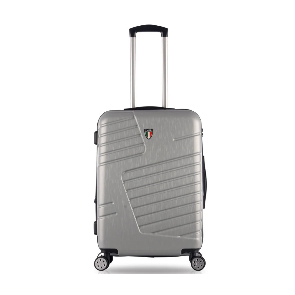 Cestovní kufr z kolekce TUCCI Boschetti. Kufr je uzavíratelný zipem. Oba jezdce zipu se dají zapojit do zapuštěného kódového zámku. Horní i boční madlo je plastové. Celý pojízdný systém je umístěn uvnitř kufru pod textilní podšívkou, aby nedošlo k poškození systému při přepravě a je opatřen čtyřmi dvojitými kolečky otočnými o 360°. Kufr má lehký teleskopický výsuvný systém, vnitřní přepážku a jistící popruhy. Cena je uvedena za 1ks zobrazené velikosti S. • velikost S (small) • materiál: ABS HARDSEHLL - flexibilní, lehký, odolný proti poškrábání • ergonomická gelová rukojeť(madlo) • vnitřní rozměr: 48 x 34 x 22 cm • vnější rozměr: 56 x 38 x 23 cm = rozměry kufru včetně koleček a horního madla • objem: 36 litrů • hmotnost: 2,7 kg • doporučená nosnost 10 kg • teleskopický výsuvný systém • 4 dvojitá kola pro velký komfort při užívání otočná o 360° • kódový zámek • 10-ti letá záruka