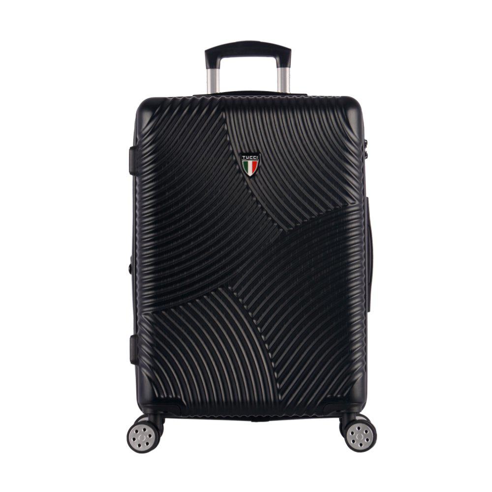 Cestovní kufr z kolekce TUCCI Srotolare.Kufr je uzavíratelný zipem. Oba jezdce zipu se dají zapojit do zapuštěného kódového zámku. Horní i boční madlo je plastové. U kufru lze pomocí druhého zipu zvětšit vnitřní objem.Celý pojízdný systém je umístěn uvnitř kufru pod textilní podšívkou, aby nedošlo k poškození systému při přepravě a je opatřen čtyřmi dvojitými kolečky otočnými o 360°. Kufr má lehký výsuvný systém, vnitřní přepážku a jistící popruhy. Cena je uvedena za 1ks zobrazené velikosti L. • velikost L (large)• materiál: ABS HARDSEHLL - flexibilní, lehký, odolný proti poškrábání• ergonomická gelová rukojeť(madlo)• vnitřní rozměr: 68 x 48 x 28 cm• vnější rozměr: 76 x 51 x 29 cm = rozměry kufru včetně koleček a horního madla• objem: 91 l / 123 l při rozšíření• rozšiřitelný – objem lze zvětšit až o 35%• hmotnost: 4,5 kg• doporučená nosnost 25 kg• výsuvný systém• 4 dvojitá kola pro velký komfort při užívání otočná o 360°• kódový zámek• 10-ti letá záruka