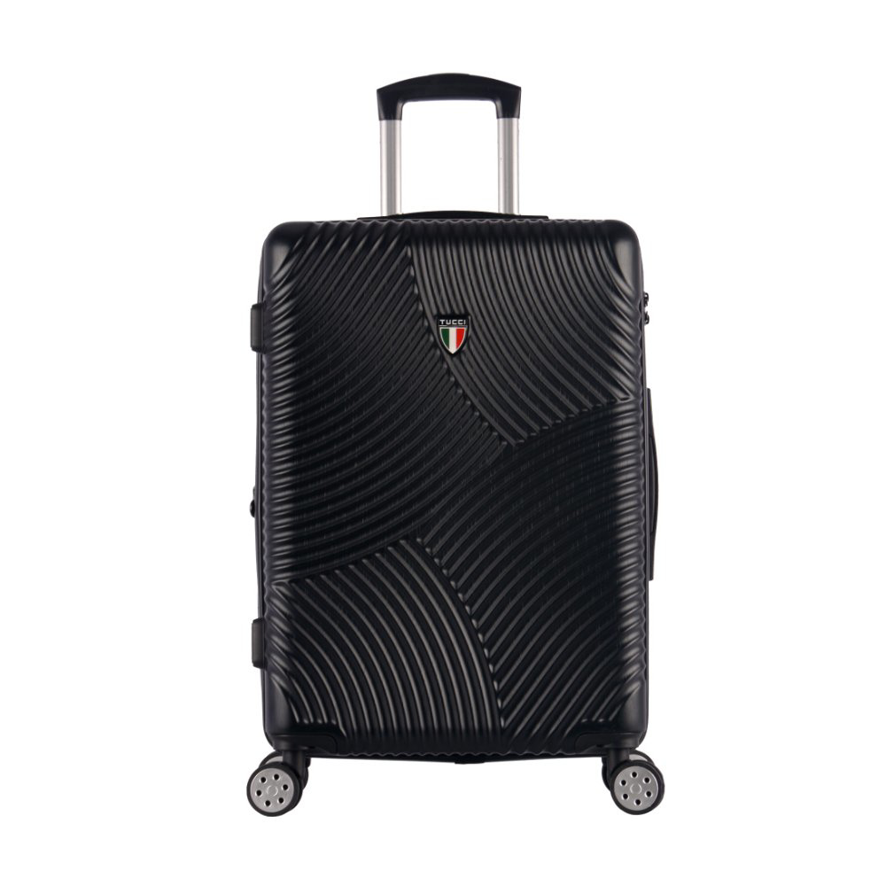 Cestovní kufr z kolekce TUCCI Srotolare.Kufr je uzavíratelný zipem. Oba jezdce zipu se dají zapojit do zapuštěného kódového zámku. Horní i boční madlo je plastové. U kufru lze pomocí druhého zipu zvětšit vnitřní objem.Celý pojízdný systém je umístěn uvnitř kufru pod textilní podšívkou, aby nedošlo k poškození systému při přepravě a je opatřen čtyřmi dvojitými kolečky otočnými o 360°. Kufr má lehký výsuvný systém, vnitřní přepážku a jistící popruhy. Cena je uvedena za 1ks zobrazené velikosti M. • velikost M (medium)• materiál: ABS HARDSEHLL - flexibilní, lehký, odolný proti poškrábání• ergonomická gelová rukojeť(madlo)• vnitřní rozměr: 58 x 41 x 25 cm• vnější rozměr: 66 x 44 x 26 cm = rozměry kufru včetně koleček a horního madla• objem: 59 l / 80 l při rozšíření• rozšiřitelný – objem lze zvětšit až o 35%• hmotnost: 3,7 kg• doporučená nosnost 20 kg• výsuvný systém• 4 dvojitá kola pro velký komfort při užívání otočná o 360°• kódový zámek• 10-ti letá záruka