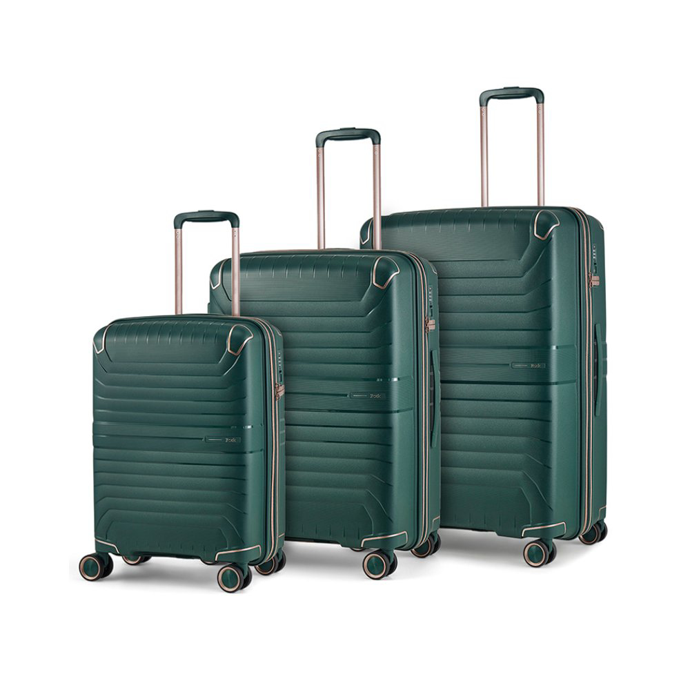 Cestovní kufry z kolekce ROCK Astrid jsou vyrobeny z polypropylenu, který je pevný a odolný proti nárazu. Kufry jsou uzavíratelné zipem, jezdce zipu se dají zapojit do TSA zapuštěného kódového zámku. U kufrů lze pomocí druhého zipu zvětšit vnitřní objem. Horní i boční madla jsou plastová. Nejmenší kufr (S) nemá boční madlo. Mají lehký výsuvný systém, prostor na víku oddělený textilní přepážkou, vnitřní kapsy a jistící popruhy. Celý pojízdný systém je umístěn uvnitř kufru pod textilní podšívkou, aby nedošlo k poškození systému při přepravě a je opatřen čtyřmi dvojitými kolečky otočnými o 360°.Cena je uvedena za 3ks sadu zobrazené velikosti L / M / S. • velikost L (large) / M (medium) / S (small)• materiál: Polypropylen• vnitřní rozměr: 69 x 48,5 x 30 cm / 58 x 42,5 x 26,5 cm / 48 x 34,5 x 21,5 cm• vnější rozměr: 76 x 51,5 x 31 cm / 65 x 45,5 x 27,5 cm / 55 x 37,5 x 22,5 cm = rozměry kufru včetně koleček a horního madla• objem: 100 l / 65 l / 36 l + expander• rozšiřitelný – objem lze zvětšit cca o 10 až 15%• hmotnost: 4,7 kg / 3,8 kg / 3 kg• doporučená nosnost 25 kg / 20 kg / 10 kg• (u vel. S teleskopický) výsuvný systém• 4 dvojitá kola pro velký komfort při užívání otočná o 360°• 15-ti letá záruka- záruka výrobce na výrobní vady způsobené vadným zpracováním nebo materiály• TSA kódový zámek TSA zámek (Transportation Security Administration)• nezbytný pro lety do USA, Austrálie, Japonska kde je letištní bezpečnostní služba oprávněna zkontrolovat obsah zavazadla i za použití násilí, pokud je uzamčeno.• TSA zámek tedy umožňuje odemčení a opětovné uzamčení vašeho zavazadla, aniž by hrozilo jeho poškození při kontrole, protože pracovník TSA je vybaven univerzálním „MASTER“ klíčem.