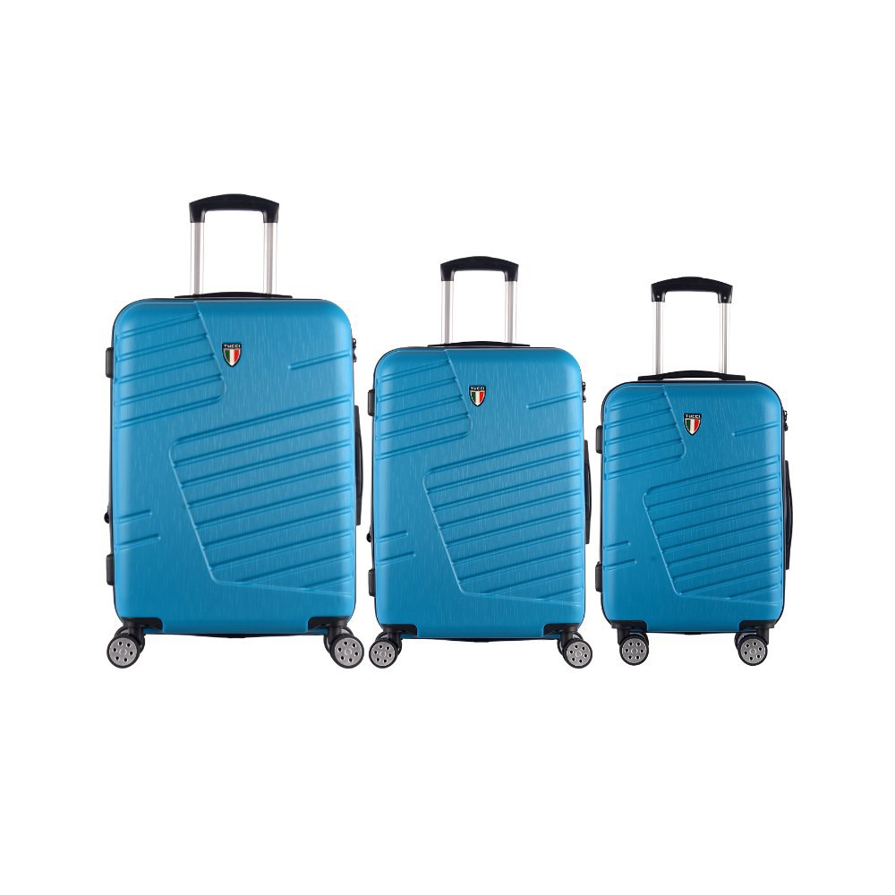 Sada cestovních kufrů z kolekce TUCCI Boschetti. Kufry jsou uzavíratelné zipem. Jezdce zipu se dají zapojit do zapuštěného kódového zámku. Horní i boční madla jsou plastová. U kufrů, kromě nejmenší velikosti S, lze pomocí druhého zipu zvětšit vnitřní objem. Celý pojízdný systém je umístěn uvnitř kufru pod textilní podšívkou, aby nedošlo k poškození systému při přepravě a je opatřen čtyřmi dvojitými kolečky otočnými o 360°. Kufry mají lehký výsuvný systém, vnitřní přepážku a jistící popruhy. Cena je uvedena za 3ks sadu zobrazené velikosti L / M / S. • velikost L (large) / M (medium) / S (small) • materiál: ABS HARDSEHLL - flexibilní, lehký, odolný proti poškrábání • ergonomická gelová rukojeť(madlo) • vnitřní rozměr: 68 x 47 x 30 cm / 58 x 41 x 26 cm / 48 x 34 x 22 cm • vnější rozměr: 76 x 51 x 31 cm / 66 x 44 x 27 cm / 56 x 38 x 23 cm = rozměry kufru včetně koleček a horního madla • objem: 96 l / 62 l + 35% expander / 36 l • rozšiřitelný – objem lze zvětšit až o 35% • hmotnost: 4,6 kg / 3,5 kg / 2,7 kg • doporučená nosnost 25 kg / 20 kg / 10 kg • výsuvný systém (u nejmenší velikosti S je teleskopický) • 4 dvojitá kola pro velký komfort při užívání otočná o 360° • kódový zámek • 10-ti letá záruka