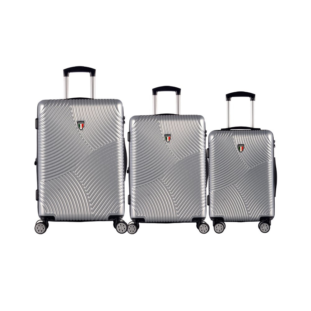 Sada cestovních kufrů z kolekce TUCCI Srotolare. Kufry jsou uzavíratelné zipem. Jezdce zipu se dají zapojit do zapuštěného kódového zámku. Horní i boční madla jsou plastová. U kufrů, kromě nejmenší velikosti S, lze pomocí druhého zipu zvětšit vnitřní objem. Celý pojízdný systém je umístěn uvnitř kufru pod textilní podšívkou, aby nedošlo k poškození systému při přepravě a je opatřen čtyřmi dvojitými kolečky otočnými o 360°. Kufry mají lehký výsuvný systém, vnitřní přepážku a jistící popruhy. Cena je uvedena za 3ks sadu zobrazené velikosti L / M / S. • velikost L (large) / M (medium) / S (small) • materiál: ABS HARDSEHLL - flexibilní, lehký, odolný proti poškrábání • ergonomická gelová rukojeť(madlo) • vnitřní rozměr: 68 x 48 x 28 cm / 58 x 41 x 25 cm / 48 x 34 x 20 cm • vnější rozměr: 76 x 51 x 29 cm / 66 x 44 x 26 cm / 57 x 37 x 21 cm = rozměry kufru včetně koleček a horního madla • objem: 91 l / 59 l + 35% expander / 33 l • rozšiřitelný – objem lze zvětšit až o 35% • hmotnost: 4,5 kg / 3,7 kg / 2,8 kg • doporučená nosnost 25 kg / 20 kg / 10 kg • výsuvný systém (u nejmenší velikosti S je teleskopický) • 4 dvojitá kola pro velký komfort při užívání otočná o 360° • kódový zámek • 10-ti letá záruka